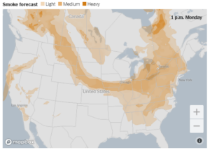 This alert is prompted due to the “smoky” skies we’re seeing across the region today and the past 24 hours as a result of Canadian wildfire smoke that’s filtered into our area again from the massive ongoing fires in Canada.