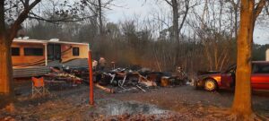 After arriving on the scene, firefighters began protecting exposure to nearby RVs and vehicles while another team directly attacked the fire. Thanks to the hard work of the firefighters on the scene, other nearby campers and RVs received only minimal damage. The fire was allegedly caused by an improperly used space heater.