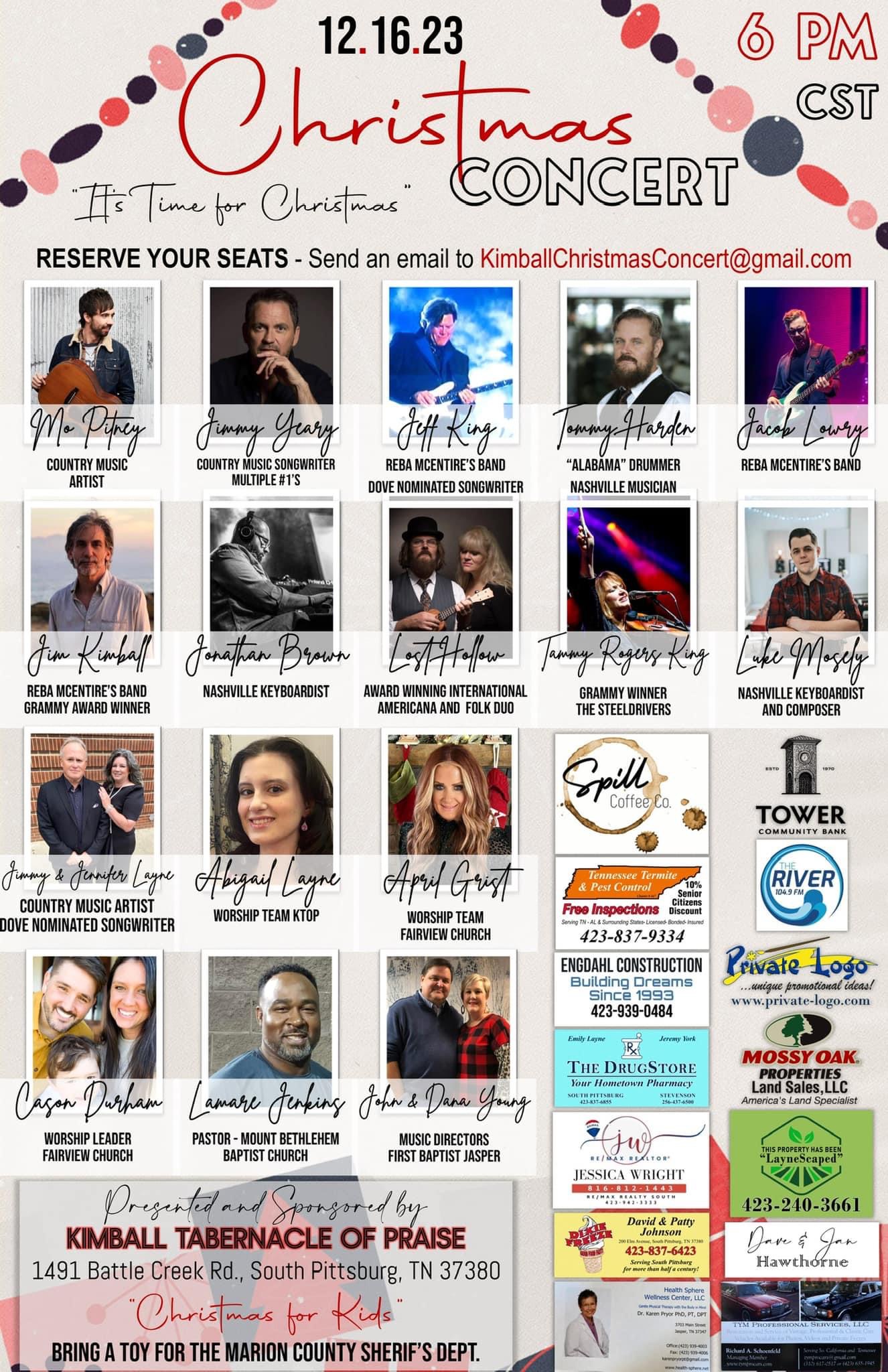 All the toys collected this night will go to the Marion County Christmas for Kids. The concert is FREE, but you are asked to bring a toy for a boy and a girl. Contact Jimmy and Jennifer Layne if you would like to volunteer!