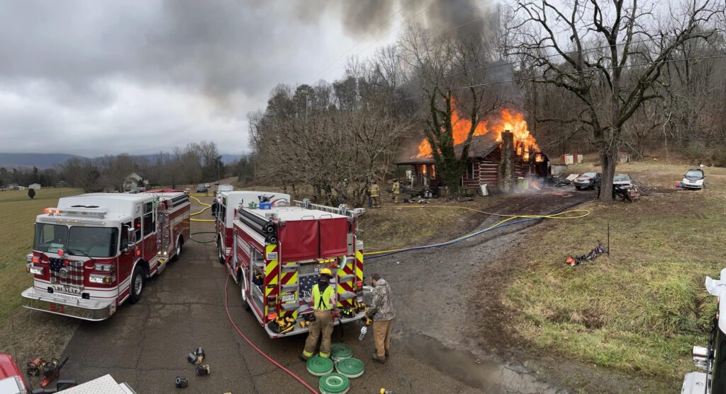 On Sunday morning (December 17, 2023), around 11:30, the Dunlap Fire Department responded to a residential fire on Tram Trail near Highway 111. The log home was constructed approximately 120 years ago.