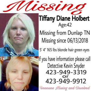 If anyone has any information on Tiffany Diane Holbert’s whereabouts, please call police at 423-949-3319 or 423-949-9912.
