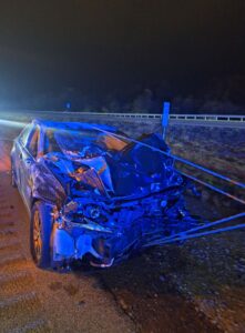 A vehicle traveling west on Interstate 24 near Kimball crashed over the weekend. The car ran into the containment cables, totaling it. This caused the westbound lanes of I-24 to temporarily close while cleanup and an investigation took place.
