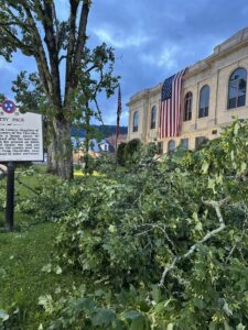A tree fell near the flags and memorial at the Marion County Courthouse, but no damage was reported to either.