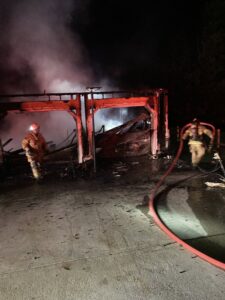 Dunlap Fire Department requested a mutual aid tanker from Southend VFD. The garage was a total loss, and the residence received exterior damage from the heat, but a good initial knockdown by firefighters prevented any fire from spreading into the residence.