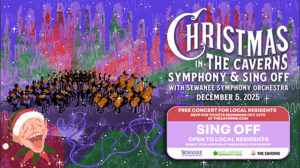 The evening also includes a regional Sing Off, a vocal competition inviting local talent of all ages from across the South Cumberland region. The concert will take place on Friday, Dec. 5, 2025, inside The Caverns’ underground concert hall. It is free to the public, but advance RSVP is required for limited seating for Tennessee’s South Cumberland region residents. Free tickets will be available to community members to reserve starting Oct. 15 at TheCaverns.com.