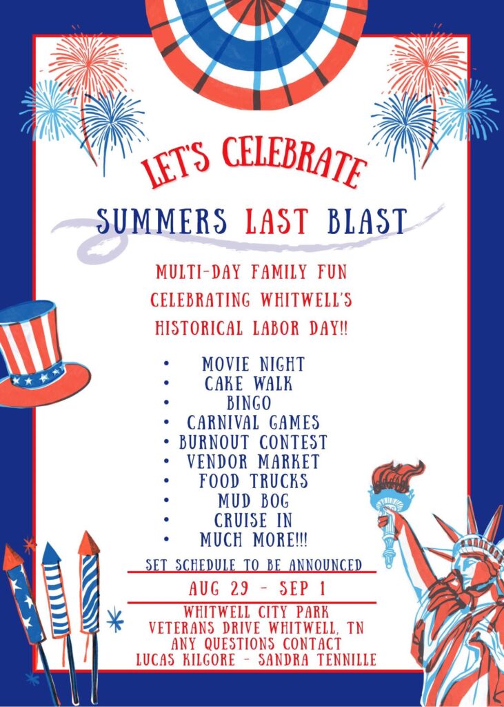 Organizers of this year’s Whitwell Labor Day Celebration say this year’s event will offer more for those who plan to attend this year than recent years past, beginning the evening of Friday, August 29th, with events going on for the entire holiday weekend and on Monday.
