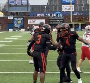 #3 Ja’Mychal Buckner celebrates with his teammates after a score
