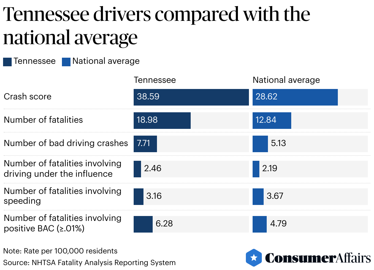 A new Consumer Affairs analysis of data from the National Highway Traffic Safety Administration shows Tennessee ranks among the worst states in the country for dangerous drivers.