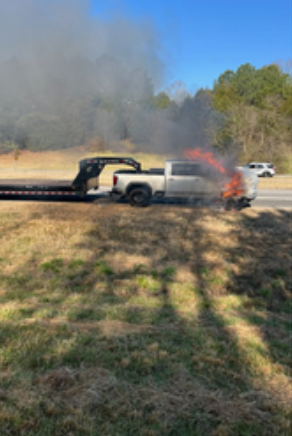 Dispatch relayed a description of the suspect and vehicle to patrol units. Officers later located the suspect vehicle — a silver GMC truck pulling a 44-foot trailer — in the parking lot of Zaxby’s.