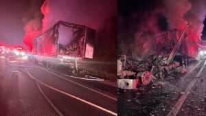 At 9:09 PM ET on Thursday (8/3/23), Fire, EMS, and law enforcement agencies responded to 482 McBrien Road near the RAVE Theatre just off I-24. A tractor-trailer hauling organic peroxide and sodium hydroxide was on fire, sparking a major hazmat response. In addition to the burning semi-trailer, the liquid chemicals the truck was hauling were …