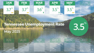 The Tennessee Department of Labor and Workforce Development (TDLWD) has announced that every Tennessee county recorded an unemployment rate of 5% or less in May. Ninety-four of the state’s 95 counties had unemployment rates below 5%, and one county — Hardeman County in southwestern Tennessee — had a rate of 5%. Unemployment rates decreased from …